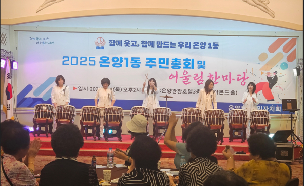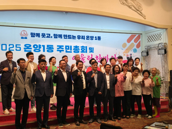 [충청뉴스 유규상 기자] 아산시 온양1동 주민자치회(회장 김찬호)는 11일 온양관광호텔 다이아몬드홀에서 열린 ‘2025년 주민총회 및 주민화합 어울림 마당’을 성공적으로 마쳤다.