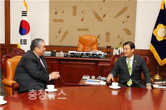 강창희 국회의장은 19일 오후 의장집무실에서 이임인사 차 방문한 비탈리 펜(Vitali V. FEN) 주한 우즈베키스탄 대사를 접견했다.