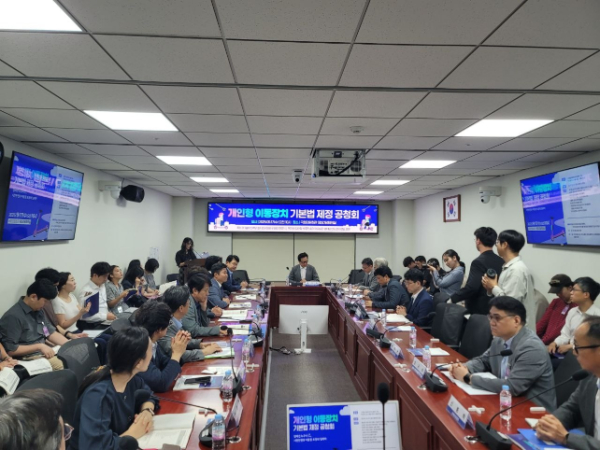 [충청뉴스 유규상 기자] 개인형 이동장치(PM) 기본법 공청회가 17일 국회의원회관 제3간담회실에서 각계 전문가 60여 명이 참석했다.