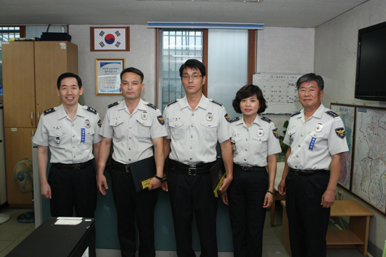 정용선 대전지방경찰청장은 21일 서부서 도마지구대를 방문, 112순찰 중 삶을 비관하여 가출한 자살기도자를 3시간에 걸쳐 설득하여 가족의 품으로 인계하여 자랑스러운 대전경찰을 빛낸 도마지구대 경위 김남균, 경사 이종현에게 포상·격려했다.