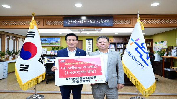 [충청뉴스 논산 = 조홍기 기자] 논산시(시장 백성현)는 19일 황산벌 한우영농조합법인·(주)황산벌 한우(공동대표 이승철)가 1,400만 원 상당의 한우 사골을 기탁했다고 밝혔다.