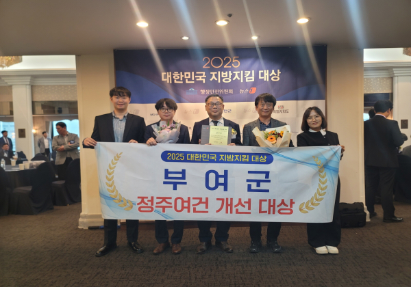[충청뉴스 부여 = 조홍기 기자] 부여군(군수 박정현)은 지난 24일 한국프레스센터에서 개최된 「2025년 대한민국 지방지킴 대상」 시상식에서 ‘정주여건 개선 대상’을 수상했다.