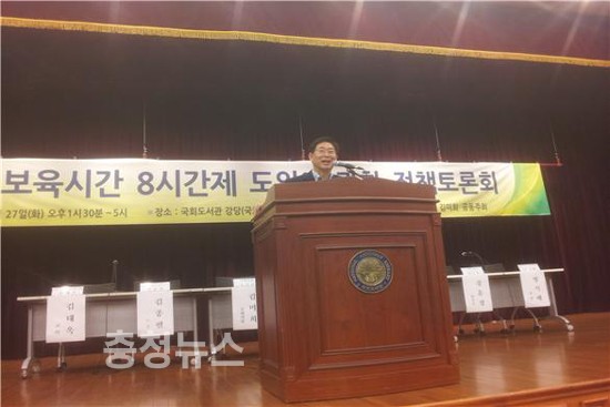 민주당 최고위원 양승조 천안갑 국회의원(보건복지위원)이 27일 국회 도서관강당에서 '종일제 보육시간 8시간제 도입' 정책토론회를 개최했다.