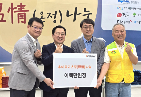 [충청뉴스 최형순 기자] 한국앤컴퍼니그룹(회장 조현범)의 핵심 계열사인 한국타이어앤테크놀로지㈜는 25일 대전시청에서 ‘2025 추석명절맞이 사랑의 온정나눔’ 행사 후원금 200만 원을 전달하는 뜻깊은 시간을 가졌다.