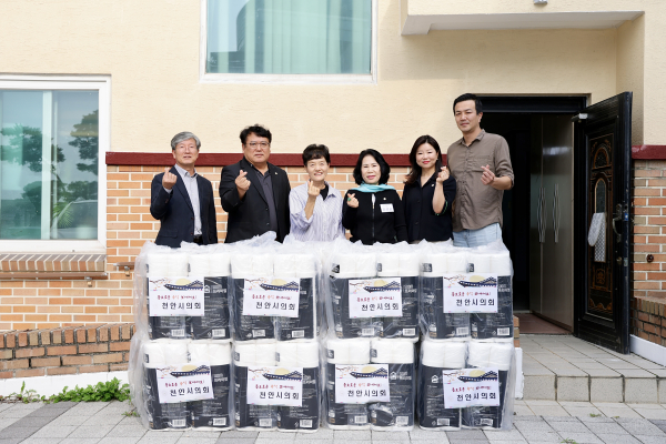 [충청뉴스 유규상 기자] 천안시의회(의장 김행금)는 30일 추석 명절을 맞아 관내 사회복지시설 6개소를 방문하여 위문품을 전달하고 시설 가족 및 돌봄 인력들을 격려하였다.