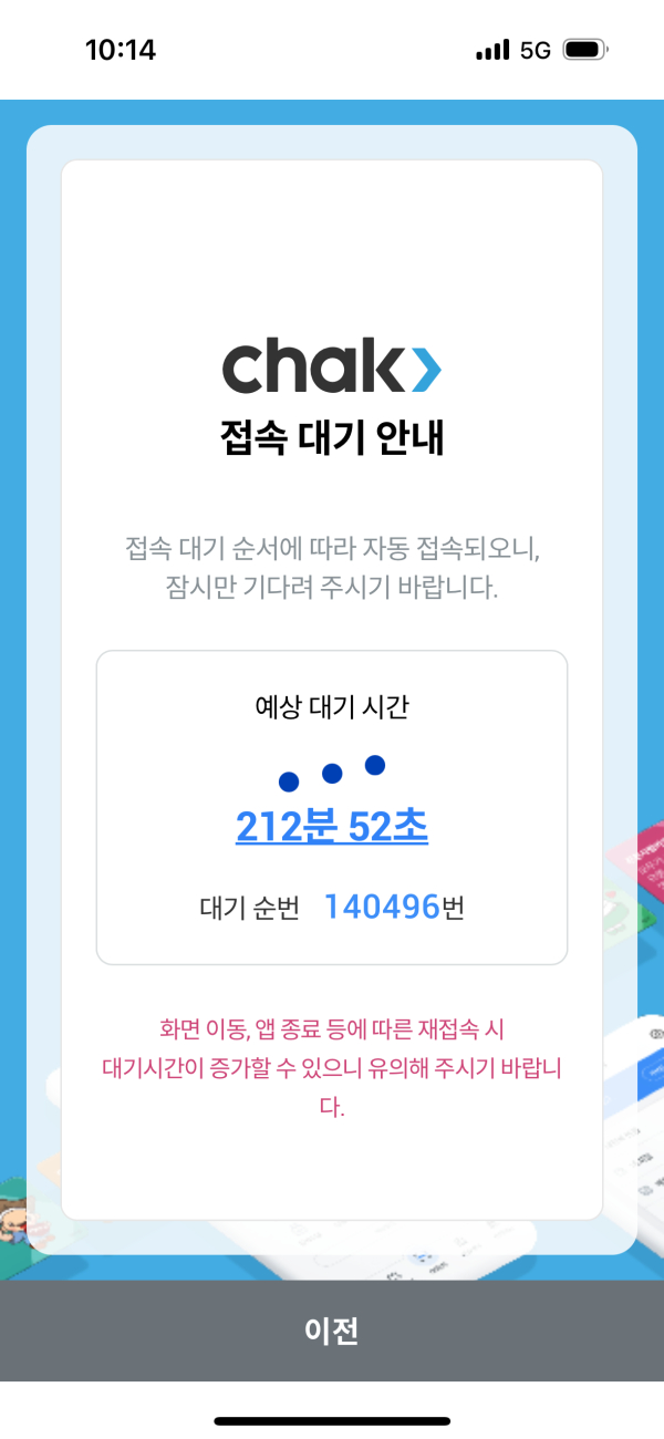 10월 1일 오전 기준, CHAK 앱 접속 대기 화면에는 최대 140,496명이 동시에 접속하는 장면이 확인되었으며, 예상 대기시간은 212분에 달해 지역화폐 앱에서는 보기 드문 규모로, 아산페이가 전국민이 주목하는 대표 민생정책으로 자리매김했음을 입증해 준다.