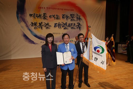 천안시는 3일 목천읍 국립중앙청소년수련원에서 열린 ‘2013 전국다문화 가족지원 네트워크 대회’에서 다문화 지원사업에 대한 공로를 인정받아 대통령 표창을 수상했다.