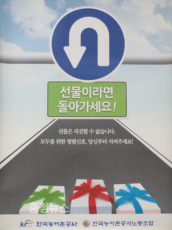 한국농어촌공사 충남지역본부(본부장 박완진)는 추석을 전후해 ‘선물 안주고 안받기 운동’의 성공적 추진을 위해 4일부터 오는 23일까지 지역본부 농지은행팀 문서수발센터에 선물 반송센터를 설치 운영한다고 밝혔다.