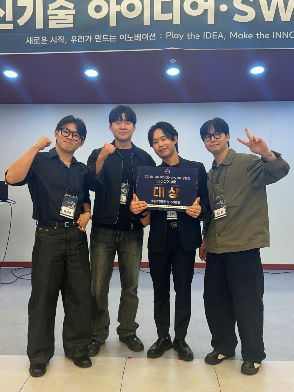 한국기술교육대학교 산업경영학부, 전기전자통신공학부 학생들이 지난 2일 충북 청주 충청 ICT이노베이션스퀘어에서 개최된 ‘2025 충청권 ICT·IS 디지털신기술 아이디어·SW개발 공모전’ 본선에서 모두 대상을 차지했다.