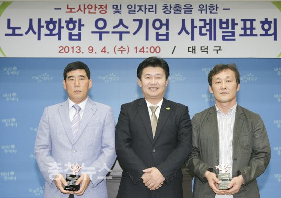 한편, 유한킴벌리대전공장과 한국특수메탈공업은 이날 노사협력 증진과 일자리창출에 기여한 공로를 인정받아 대덕구청으로부터 노사문화 우수기업으로 선정됐다.