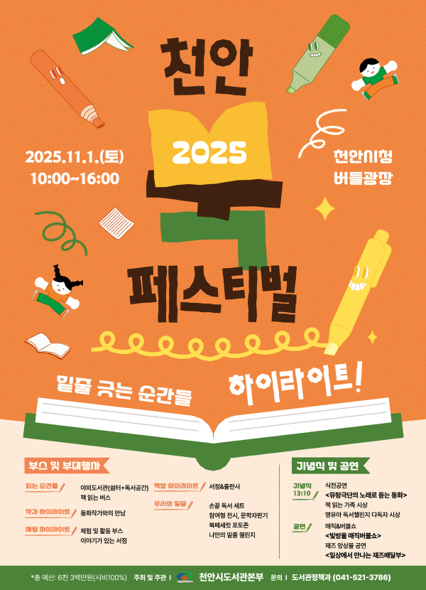 이번 북페스티벌은 ‘밑줄 긋는 순간들 : 하이라이트!’를 주제로 책 속 문장을 밑줄 그어 간직하듯 일상 속 특별한 기억을 남기고, 독서의 즐거움을 나누는 지역 협력형 축제로 운영된다.