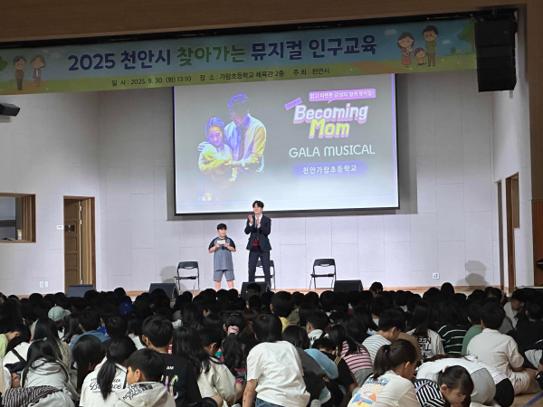 뮤지컬 인구교육은 ‘2025년 천안시 인구교육 확대계획’의 일환으로 추진됐으며 수요조사를 통해 선정된 차암초등학교, 가람초등학교, 용곡중학교 등 총 3개교 77학급 2,370명을 대상으로 실시됐다.