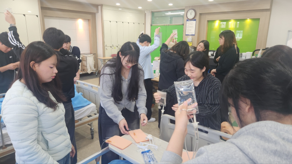 참가 학생들은 전공 교수와 대학생 멘토의 지도를 받으며 보건·의료 분야의 다양한 직업과 학과 정보를 직접 체험했다. 특히 간호학과 실습에서는 정맥주사, 혈당 체크 등 실제 임상 실습 프로그램을 경험하며 전공 이해도를 높였다.