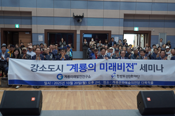 한반도선진화재단이 후원한 이번 세미나는 120여 명의 시민과 전문가가 참석해 성황을 이뤘다. ‘경제활력과 생활복지의 발전 방향’을 주제로 열린 이날 토론은 민·군이 조화롭게 공존하는 지속가능한 도시 계룡의 미래를 그려보는 의미 있는 시간이 됐다.