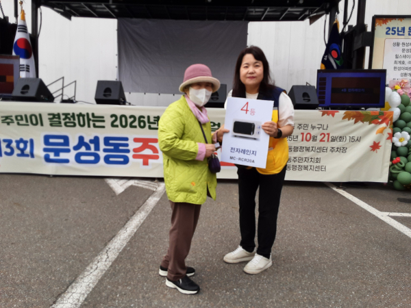소영진 주민자치회장은 “이번 주민총회는 주민이 직접 참여하고 결정하는 화합의 장”이라며 “오늘 선정된 마을의제를 실행하여 주민과 함께 살기 좋은 문성동을 만들어 나갈 것이며, 우리가 함께 만들어 가는 변화의 시작에 주민들의 적극적인 참여를 부탁한다”고 말했다.