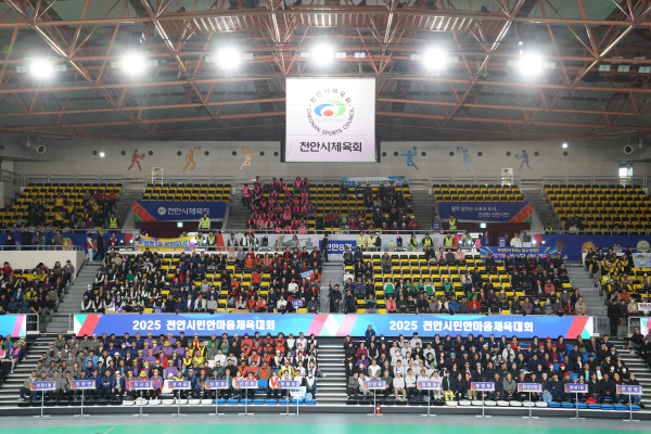 [충청뉴스 유규상 기자] 시민들의 화합축제인 ‘2025 천안시민한마음체육대회’가 지난 25일 천안종합운동장 유관순체육관과 종목별 경기장에서 개최되었다. 천안시체육회가 주최한 이번 대회는 ‘활력넘치는 스포츠 도시, 건강한 천안시민’을 슬로건 아래 스포츠로 화합하는 시민 참여형 체육축제로 올해 개회식은 행사의 집중도를 높이기 위해 천안종합운동장 주경기장에서 유관순체육관으로 옮겨 진행됐으며, 개회식에는 김석필 천안시장 권한대행 부시장, 한남교 천안시체육회장 등이 참석했다.