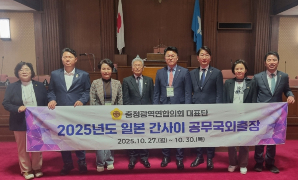 [충청뉴스 최형순 기자] 충청광역연합의회는 노금식 의장을 비롯한 의원 7명으로 구성된 대표단이 지난 27일부터 3박 4일간 진행된 일본 간사이 지역 공무국외출장을 성공적으로 마무리하고 돌아왔다.