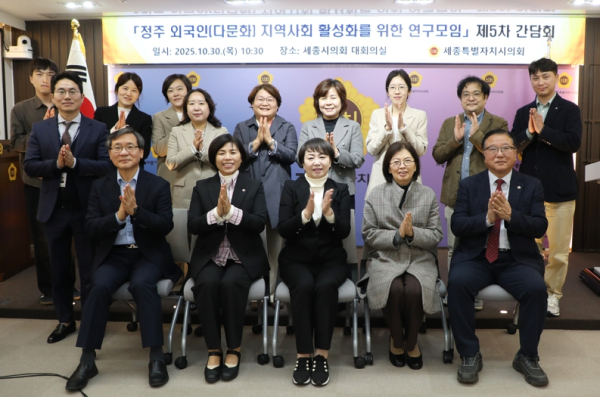 [충청뉴스 최형순 기자] 세종특별자치시의회(의장 임채성) ‘정주 외국인(다문화) 지역사회 활성화를 위한 연구모임(대표의원 홍나영, 이하 연구모임)’은 30일 오전 10시 30분 시의회 대회의실에서 ‘세종시 정주 외국인 정책 수립 및 활성화를 위한 기초 연구용역’ 최종 간담회를 개최하고, 세종시 맞춤형 정주 외국인 지원 정책 방향을 점검했다.