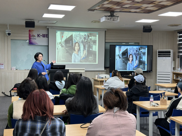 이날 특강에는 뷰티코디네이션학과 재학생 40여 명이 참석해, ‘K-뷰티의 현재와 미래, 그리고 나의 역할’을 주제로 진행된 강연을 경청했다.