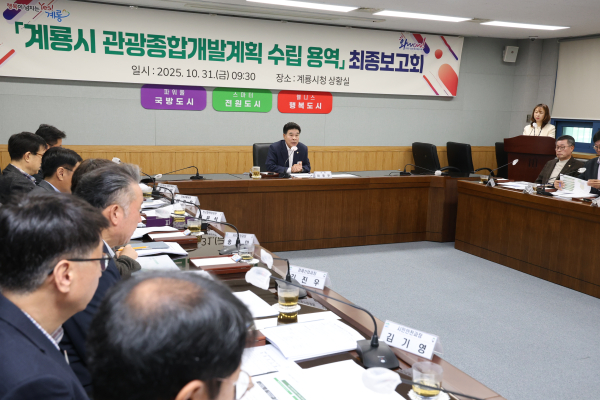 [충청뉴스 계룡 = 조홍기 기자] 계룡시(시장 이응우)는 지난 31일 시청 상황실에서 ‘계룡시 관광종합개발계획 수립 용역’ 최종보고회를 개최하고 지난 6개월간의 연구 성과와 향후 추진 전략을 공유했다.