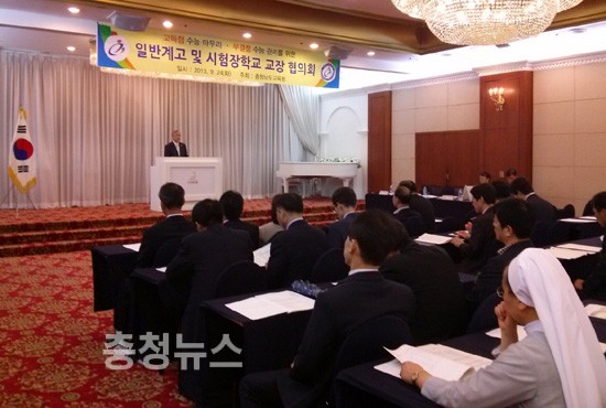 충남도교육청(교육감권한대행 부교육감 전찬환)은 23일 온양제일호텔에서 도내 일반계고 및 시험장학교 교장이 참석한 가운데, 2014학년도 대학수학능력시험의 효율적인 마무리 학습지도와 무결점 수능 운영을 위한 학교장 협의회를 개최했다.