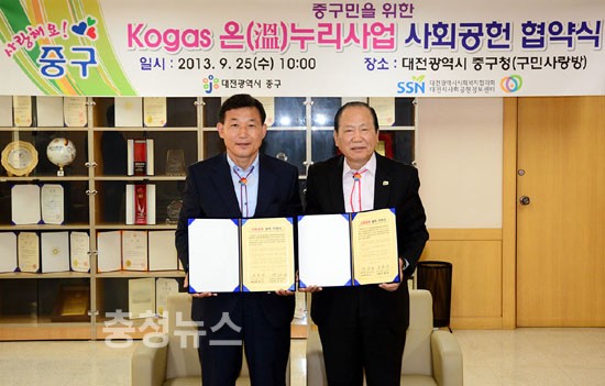 ‘Kogas 온(溫)누리사업’은 중구와 대전광역시사회복지협의회(대전시사회공헌정보센터)에서 주관하고 한국가스공사가 후원하는 저소득 가구 및 취약 사회복지시설의 에너지 효율개선사업으로 대전에서는 유일하게 중구 저소득가구와 사회복지 시설을 대상으로 사업을 진행한다.