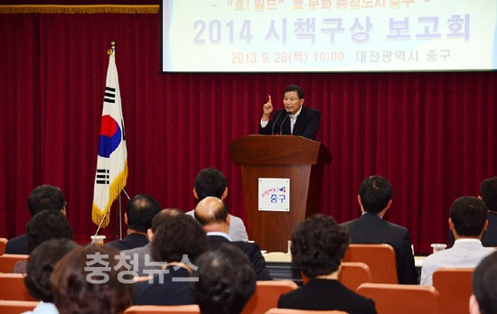 대전시 중구(구청장 박용갑)는 26일 대회의실에서 박용갑 중구청장을 비롯, 직원 등 200여명이 참석한 가운데 구민이 체감하고 공감할 수 있는 행정 구현을 위해 새롭게 추진할 ‘2014년 시책구상 보고회’를 개최했다.
