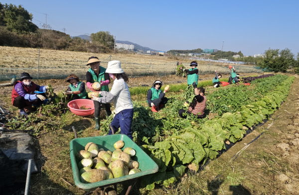 부녀회원들은 직접 재배한 무와 갓으로 양념을 준비하고 김치를 담가, 관내 20개 자연마을 경로당에 각각 김장김치 3박스와 떡국떡 6kg씩을 전달했다.