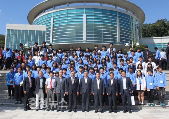 ▲ 제42년차 전국FFK 전진대회에서 우수한 성적을 거둔 충남대표 학생들이 전찬환 교육감권한대행(사진 앞줄 가운데)과 기념촬영하고 있다.