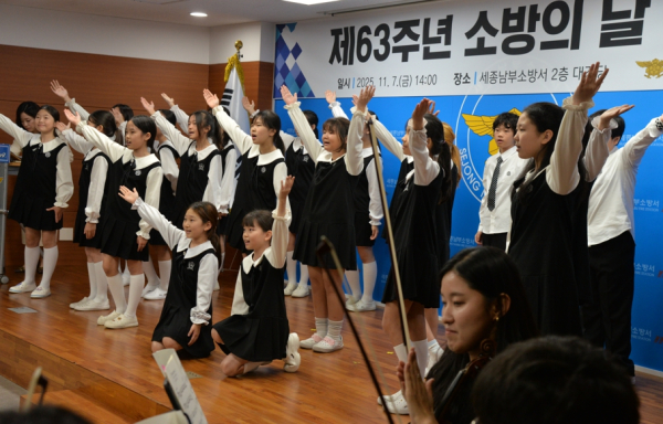 특히 세종 연세초등학교 '연세엔젤스 합창단'과 콰르텟이즈 박유나, 김동빈, 진원별, 전예린이 소방관들에 대한 응원과 감사의 마음을 담은 축하 공연을 선보여 행사의 의미를 더했다.