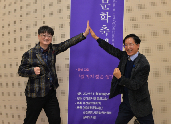 [충청뉴스 최형순 기자] 올해로 창립 23주년을 맞은 대전글벗문학회(회장 배용주)가 (재)대전문화재단, 대전광역시문화원연합회, 갈마도서관 후원으로 8일 갈마도서관 문화교실에서 김수진 시인의 사회로 ‘제23회 글벗문학축제’를 성황리에 개최했다.