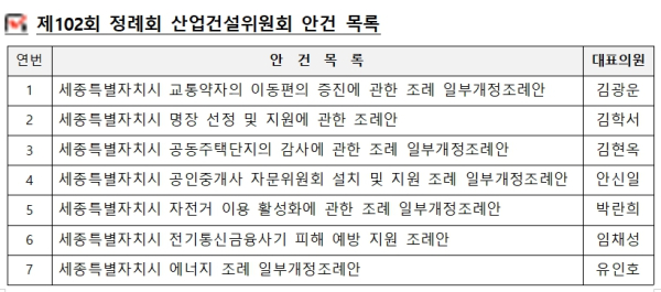 김재형 세종시의회 산업건설위원장, "민생경제 활력 집중"