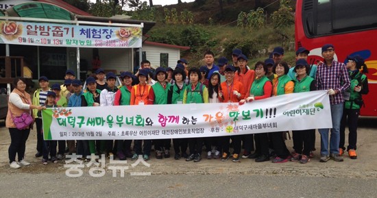 초록우산 어린이재단 대전장애인보호작업장(www.childfund-djwork.or.kr 원장: 장인국)은 2일 대전 대덕구새마을부녀회의 후원으로 훈련생 35명과 자원봉사자 20여명이 함께하는 가을 나들이 문화체험 ‘대덕구새마을부녀회와 함께 하는 가을 맛보기’행사를 실시했다.