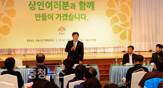 안희정 충남도지사는 4일 태안 안면도 오션캐슬에서 도내 전통시장 상인과 시‧군 담당 공무원 등 150여명이 참석한 가운데 ‘전통시장 정책토론회’를 가졌다.