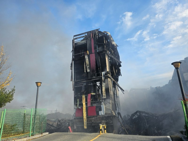 금일 오후 13시 현재 화재가 발생한 이랜드 패션 물류센터의 건물 대부분은 완전 전소된 상태이나 일부 철골 콘크리트 구조의 경우에는 열화현상 심화로 접근이 어려운 상태이며, 아직도 완전 진화가 되지는 않은 상태에서 유독가스가 지속적으로 분출되고 있어 소방당국은 화재현장을 예찰하면서 후속조치를 강구하고 있다.