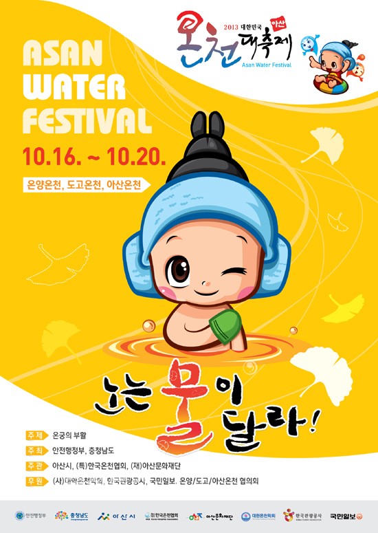 2013 대한민국 온천대축제가 오는 16~20일까지 5일간 아산시 온양온천, 도고온천, 아산온천에서 ‘온궁의 부활’이란 주제와 ‘노는 물이 달라’ 슬로건으로 개최된다.
