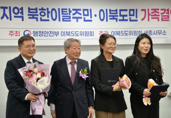 이날 가족결연식에서는 북한이탈주민 김연경 씨와 이북5도민 이지연 씨를 포함해 총 5쌍이 새로운 ‘가족’으로 결연을 맺고 서로의 버팀목이 될 것을 다짐했다.