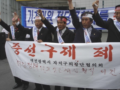기초의원들의 집단반발 움직임은 전국적으로 확산될 것으로 보인다. 국회가 지난 6월 30일 ‘중선거구제 · 정당공천제 · 유급제 도입, 기초의원 정수축소’ 등 공직선거법 개정안을 지방의회의 반발에도 불구하고 일방적으로 통과시킨 것에 대해 강력히 항의하기 위한 것이다.