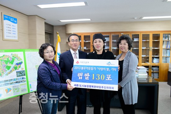 피옥자 도시농업 담당은 “추진위는 행사 후 수익금의 활용처를 논의한 끝에 지역의 어려운 이웃을 위해 쓰자는 의견이 모아 햅쌀 130포를 구입, 세종시에 기탁 하게 됐다”며 “도시농업을 통해 시민이 화합하고 도시와 농촌이 상생발전할 수 있도록 더욱 노력하겠다”고 말했다.