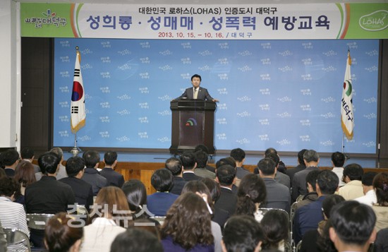 전 직원 대상 성희롱·성매매·성폭력 예방교육 실시 대전시 대덕구(구청장 정용기)는 지난 15~16일 양일간 구청 대강당에서 전 직원을 대상으로 성희롱ㆍ성매매ㆍ성폭력 예방교육을 실시했다. ▲ 대덕구 성희롱ㆍ성매매ㆍ성폭력 예방교육 이번 교육에는 염건령 중앙경찰학교 교수를 초청해 조직 내 양성평등 문화의 이해’라는 주제로 직장 내 성희롱 발생원인과 대처요령, 성희롱 및 성매매, 성폭력의 유형 등 직장인들이 실생활에서 지켜야 할 유용한 사례들을 소개하는 시간을 가졌다. 정용기 구청장은 "오늘 교육을 통해 성에 대한 건전한 가치관 함양으로 서로 존중하고 협력하는 가운데 열심히 일할 수 있는 밝고 건강한 직장 문화 조성에 힘써 주기 바란다"고 당부했다. 저작권자 © 충청뉴스 무단전재 및 재배포 금지 최온유 기자 다른기사 보기 기사가 마음에 드셨나요? 충청뉴스 좋은 기사 후원하기 1,000원 3,000원 5,000원 10,000원 30,000원 50,000원 직접입력 비회원 약관동의하기 ※ 소중한 후원금은 더 좋은 기사를 만드는데 쓰겠습니다.