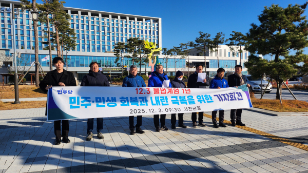 민주당 서천 당원 일동은 “진정한 내란의 종식과 민주·민생 회복을 위해 지역 주민과 함께 지속적으로 노력하겠다”고 밝혔다.