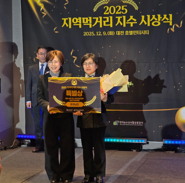 충남도는 '2025년 지역먹거리지수 평가'에서 특별상인 농림축산식품부장관상을 수상했다고 밝혔다.