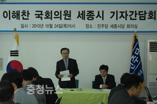 민주당 이해찬(세종시) 국회의원은 24일 오후 세종시당 회의실에서 기자회견을 갖고 실질적인 행정수도이자 전국 유일의 특별자치시인 세종시의 안정적 발전을 위해 재원대책과 자치권한 확대, 행정지원 방안을 담은 세종시 특별법 개정안을 여야의원 155명의 서명으로 지난 2012년 10월 18일에 발의했다고 밝혔다.