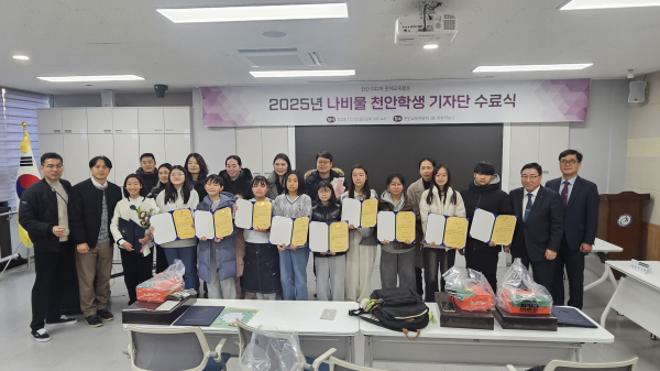 [충청뉴스 유규상 기자] 천안교육지원청(교육장 차덕환)은 지난 12일 천안교육지원청에서 2025 나비물 천안학생기자단 수료식을 개최했다.