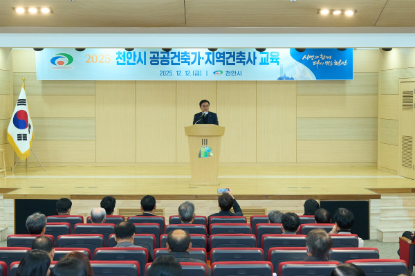 [충청뉴스 유규상 기자] 천안시는 지난 12일 한들문화센터 이벤트홀에서 공공건축가, 지역건축사 등 100여 명을 대상으로 공공건축 관계자 교육을 개최했다.