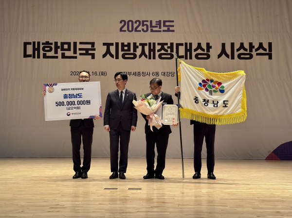 [충청뉴스 박영환 기자] 충남도는 16일 정부세종청사 대강당에서 열린 ‘2025년 대한민국 지방재정대상 시상식’에서 국무총리상을 받아 재정 인센티브 5억 원을 확보했다고 밝혔다.