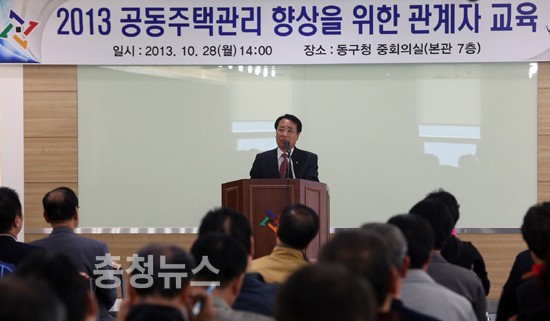 대전 동구(구청장 한현택)는 28일 구청 중회의실에서 관내 의무관리대상 공동주택의 동별 대표자, 관리사무소장, 경비담당자 등 100여명을 대상으로 공동주택 관리 관계자 교육을 실시했다.