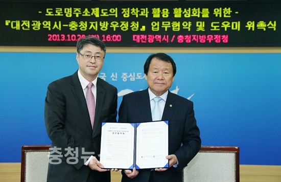 대전시와 충청지방우정청이 내년부터 전면 시행되는 도로명주소 조기정착에 힘을 모은다.