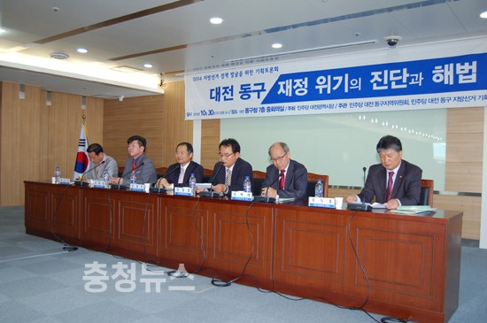 30일 오후 대전동구청 7층 중회의실에서 열린 민주당 대전시당 주최 ‘대전 동구 재정위기의 진단과 해법’토론회에서 토론자들은 지방정부의 열악한 재정환경 개선과 주민들의 참여를 통한 감시와 견제의 필요성을 한목소리로 외쳤다.