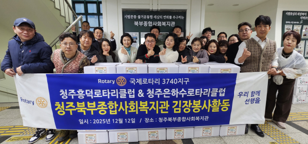 이번 '사랑의 김장김치 나눔 행사'는 사단법인 징검다리(대표 임동현), 사단법인 한국마트협회 충청북도지회(지회장 류찬걸), 청주흥덕로타리클럽(회장 손석민), 청주은하수로타리클럽(회장 유미숙)의 따뜻한 후원과 협력으로 더욱 풍성하게 진행되었다.
